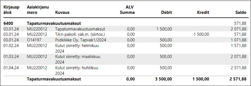 - kuukausittaiset jaksotukset, jolloin näiden tapahtumien jälkeen saldomuutos on nolla
