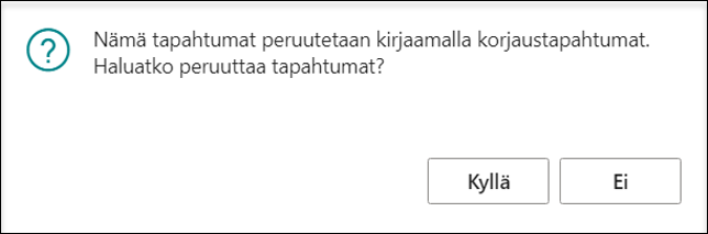 Etsi käsiteltävä Siirtomallin kirjaustapahtuma ja klikkaa valikosta Peruutus / Peruuta tapahtumat.