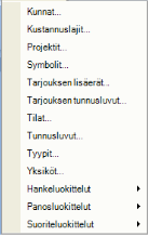 Kustannuslajeja lisätään näkymän valikon käskyillä.