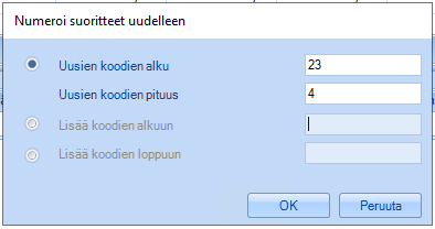 Numeroi suoritteet uudelleen – Numeroidaan valitut suoritteet uudelleen annettujen valintojen mukaisesti