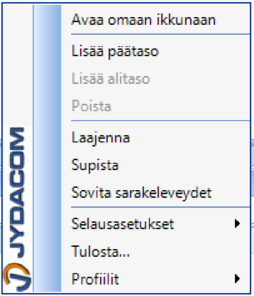 Apuvalikko avataan hiiren kakkospainikkeella