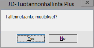- Ok => sulkee lisä- ja muutostyö -ikkunan, ohjelma varmistaa talletetaanko muutokset