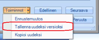 - Tallenna uudeksi versioksi => Tallennetaan lisä- ja muutostyöstä uusi versio, vanha versio lukitaan